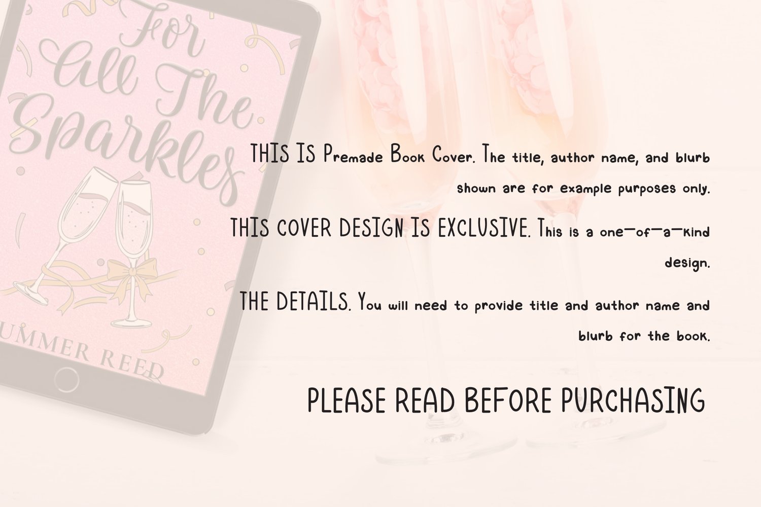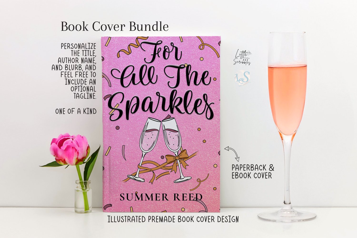 Illustrated Premade Book Cover | Sparkly Celebration Design for Romance & RomCom