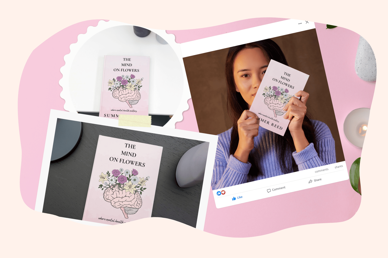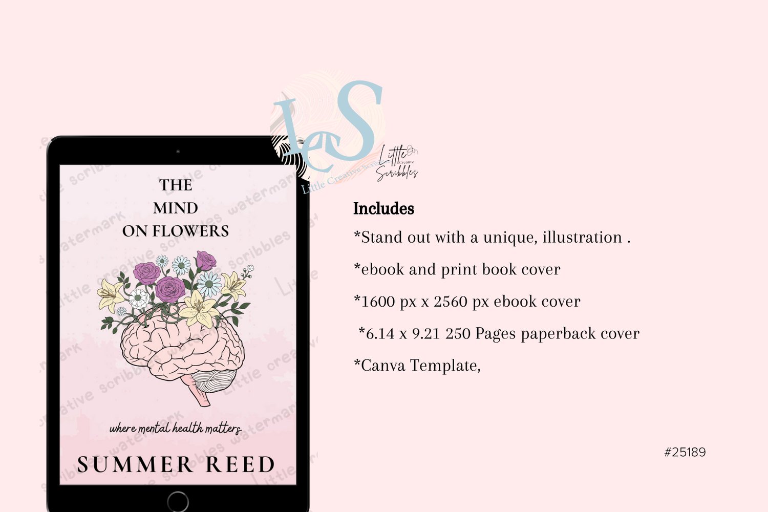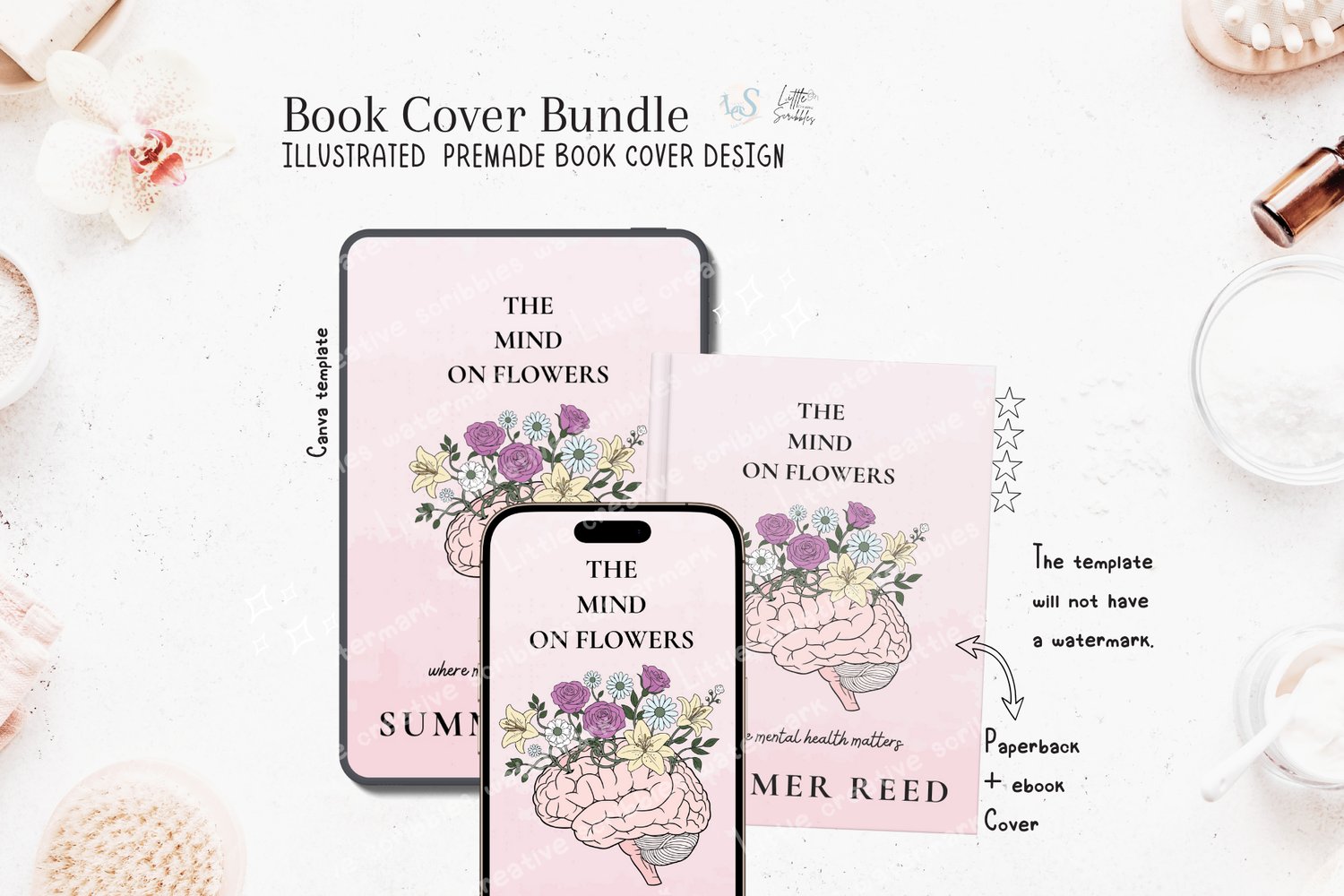 Editable Premade Book Cover Canva Template Minimalist Floral Brain Design for Self-Help and Psychology Books