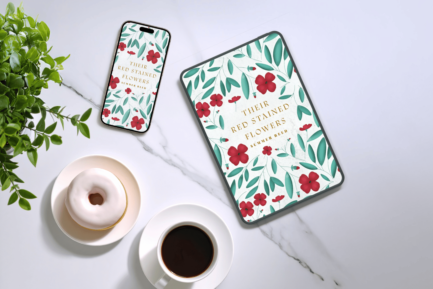 Instantly elevate your contemporary romance, literary fiction, or women's fiction novel with this stunning, hand-drawn premade book cover that’s sold only once. Featuring a beautiful, clean pattern of vibrant red flowers and elegant teal leaves, this exclusive design ensures your book stands out from the crowd on Amazon KDP, IngramSpark, and all major ebook platforms. This isn't just a cover; it's a complete book launch bundle designed to give your project the unforgettable first impression it deserves.